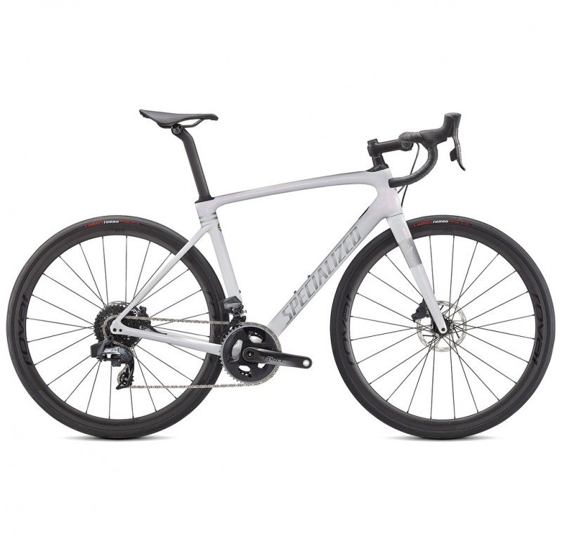SRAM Force eTap AXS 12-speed wireless shifting is incredibly precise and smooth, with the 10-36-tooth cassette and 46/33-tooth chainring pairing ensuring less arduous climbing and all-out speed on descents and in sprints. Hydraulic discs are confidence-inspiring at speed even in the rain, providing equal power on wet and dry roads. The bike rolls on Roval Alpinist CL carbon wheels in a versatile 33mm depth and is finished with a carbon Hover handlebar and Power saddle.
